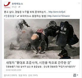 11/14 썸네일형 리스트형 (일반 기사) 11/14일 시위대와 경찰간 무력충돌 주말인 14일 오후 서울 도심에서 노동·농민단체 회원·학생 등 수 만 명(민주노총 추산 13만명, 경찰 추산 6만 8천명)이 정권을 규탄하는 대규모 집회를 열고 광화문 방향으로 진출을 시도하다 세종로 일대에서 이를 막는 경찰과 밤늦게까지 충돌했다. 몇몇 참가자들은 마스크를 쓰고 쇠파이프를 들고 있었으며, 차벽으로 설치된 경찰버스를 밧줄로 끌어내는가 하면 인도의 벽돌을 깨 던지는 등 폭력적인 양상을 보였다. 경찰도 이에 맞서 캡사이신 용액을 탄 물대포로 대응해 물대포를 맞은 60대 시위자가 중태에 빠지는 등 부상자들이 속출했다. 경찰은 이번 대응은 광화문 인간에 집회신고를 내지 않고 시위대가 청와대 방향 행진을 시도했기에 일어났다고 밝혔다. 허나, 민주노총은 이미 신고를 마친 상황이었다고 반박했다. 경찰의.. 더보기 이전 1 다음